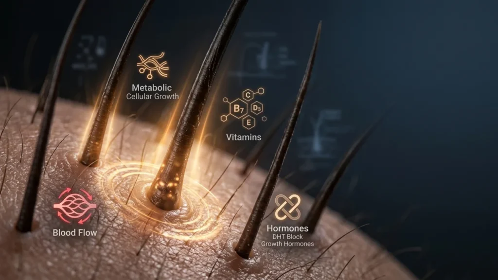 - Nutrient deficiencies — low iron, vitamin D, zinc, or biotin directly impact the hair growth cycle. A 2017 report in Dermatology Practical & Conceptual confirmed this.